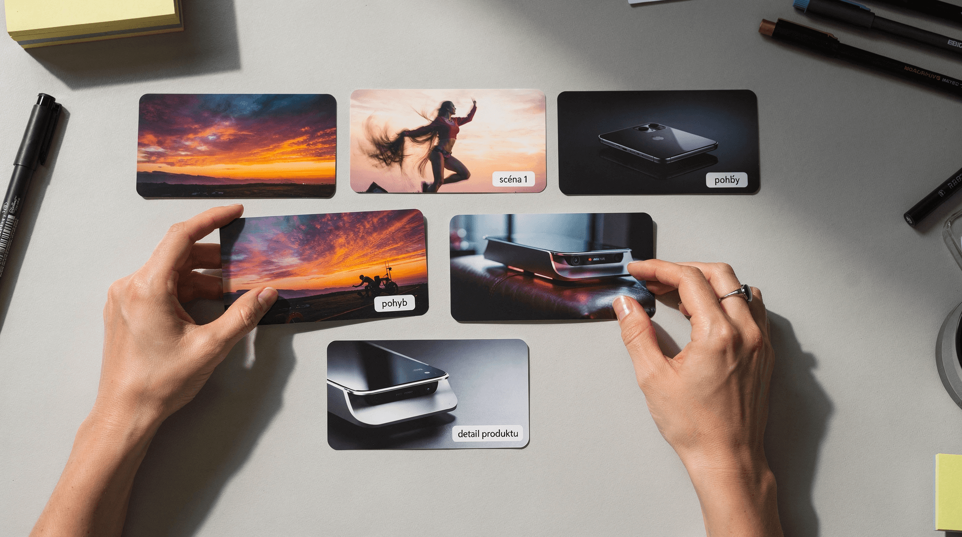 Představte si spot: Tři vteřiny frustrovaného člověka nad chaosem na stole. Dvě vteřiny, kdy sahá po vašem produktu. Pět vteřin spokojeného používání. Tři vteřiny výsledku – uklizený stůl, úsměv. Dvě vteřiny na logo. Bez Storyboardu byste museli doufat, že AI pochopí celou strukturu z jednoho promptu. Se Storyboardem máte kontrolu nad každým momentem.